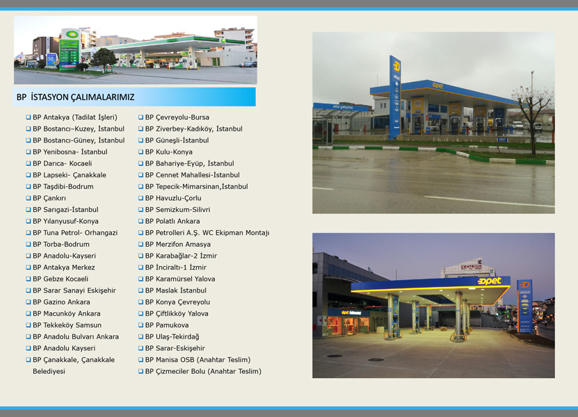 Firmamız akaryakıt istasyon komple inşaatı, tesisatı ve akaryakıt istasyonlarıyla ilgili diğer teknik konularda, uzman kadrosuyla, yurt çapında tüm petrol şirketlerine uluslararası kalite ve emniyet standartlarında hizmet vermektedir.